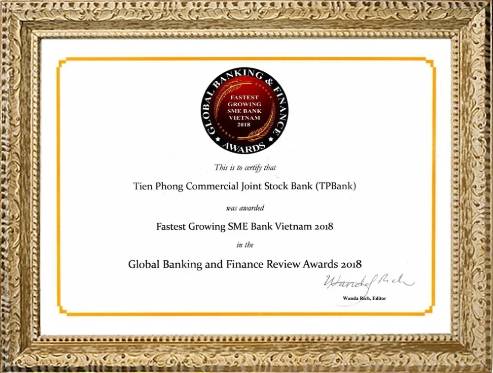 Theo đại diện của GBFR, giải thưởng này được trao cho TPBank dựa trên các tiêu chí: Số lượng khách hàng SME (doanh nghiệp vừa và nhỏ) tăng trưởng trong năm, số lượng sản phẩm, dịch vụ tài chính dành cho khách hàng SME và tốc độ tăng trưởng doanh thu từ phân khúc khách hàng này.