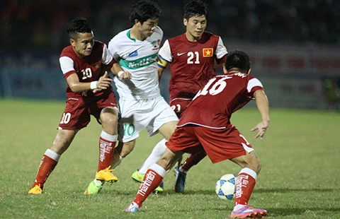 Chỉ lo phòng ngự, đàn anh U-21 bị lên án là chơi thứ bóng đá tiêu cực. Ảnh: ANH HẢI
