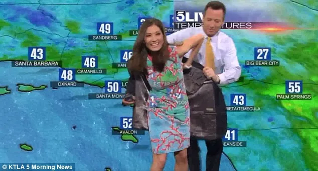 Một đồng nghiệp cùng dẫn bản tin với cô đã giải cứucô khỏi sự cố trang phục này bằng cách đưa cô chiếc áo khoác của anh.