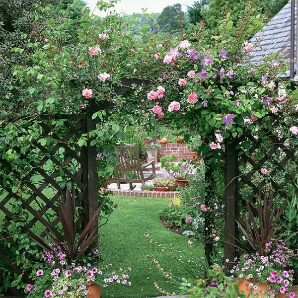 Mỗi một màu hoa đều mang lại cảm xúc và vẻ đẹp riêng cho không gian nhà vườn. Những chiếc cổng hoa thường được chọn chất liệu gỗ hoặc kim loại với kiểu dáng thanh thoát nhằm tôn lên vẻ đẹp tự nhiên của hoa cỏ. Có thể chiếc cổng dẫn vào lối đi xanh mướt cỏ cây có phần hơi đơn điệu nhưng nó sẽ được tiếp thêm sức sống cùng vẻ đẹp rực rỡ nhờ những cây hoa xinh xắn.