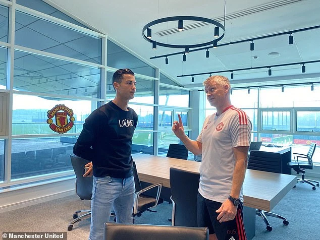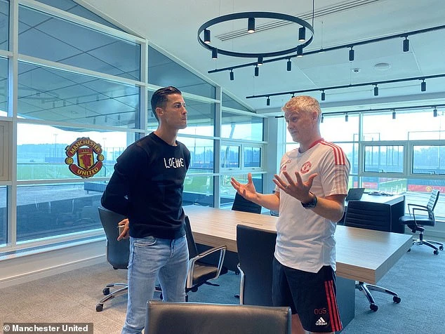 Ronaldo trao đổi với HLV Ole Gunnar Solskjaer. ẢNH: MAN UTD