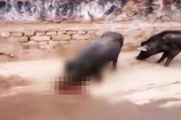 Lợn hoang tấn công bé gái bị bỏ rơi - Ảnh: CEN