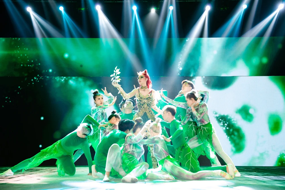 Với sự hòa trộn giữa âm nhạc và ánh sáng, The Crown Team đã mang đến thông điệp vô cùng ý nghĩa khiến người xem phải nổi da gà khi gợi nhắc về những đau thương sau thiên tai, lũ lụt.
