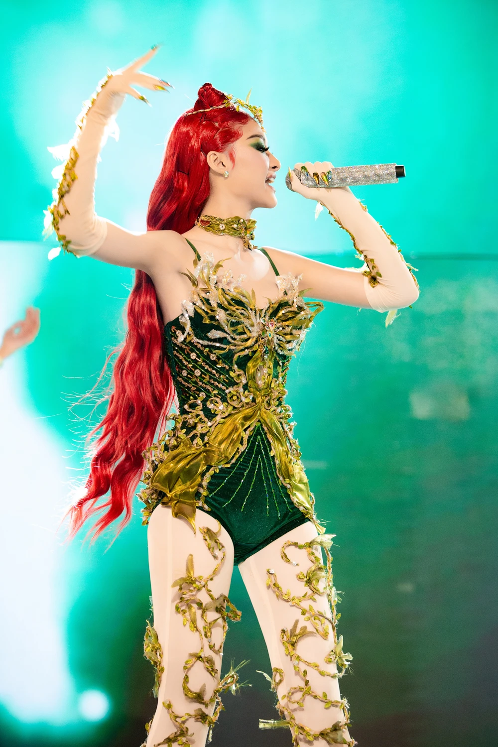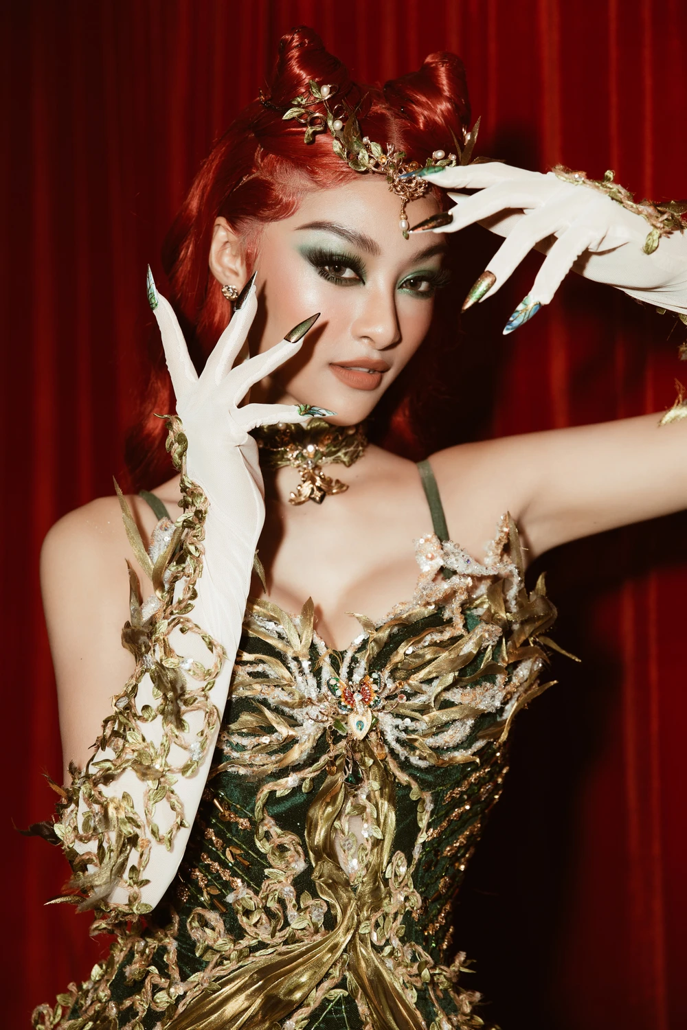 Người đẹp đầy nổi bật với bộ tóc đỏ cùng trang phục tôn dáng bám sát chủ đề mà mình lựa chọn.