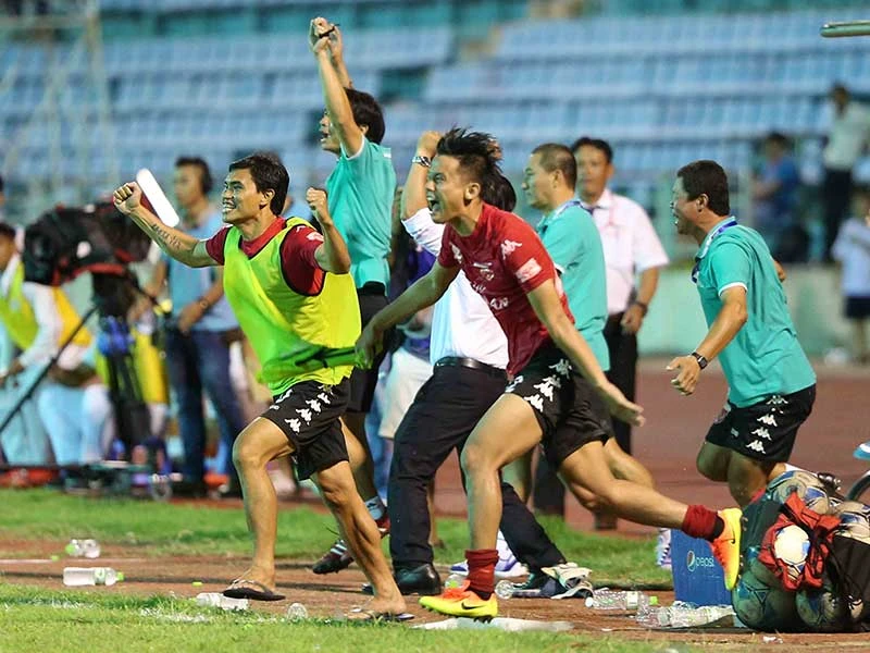 Thắng trận play off và được ở lại chơi giải chuyên nghiệp 2017, toàn đội Long An như vừa chết đi sống lại và ăn mừng như vừa đoạt cúp vô địch.