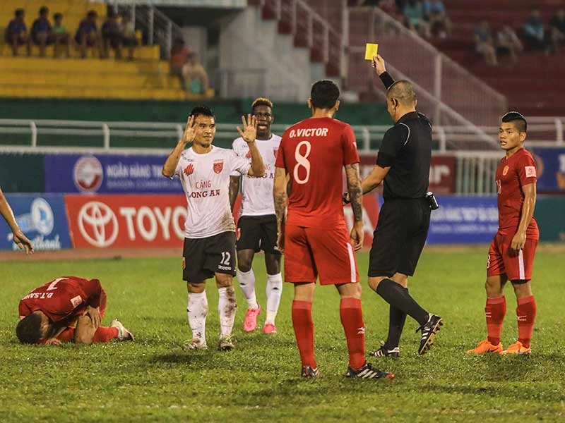 Long An quyết không đầu hàng số phận sau sự cố với trọng tài trên sân Thống Nhất. Ảnh: HUY PHẠM