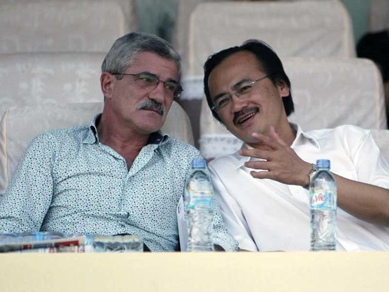 Bầu Thắng may mắn có ông Calisto nên nhiều lúc bơi ngược dòng chảy mà vẫn lên ngôi vua năm 2005, 2006. Bây giờ thì đội Long An đuối nước thật rồi. Ảnh: XUÂN HUY