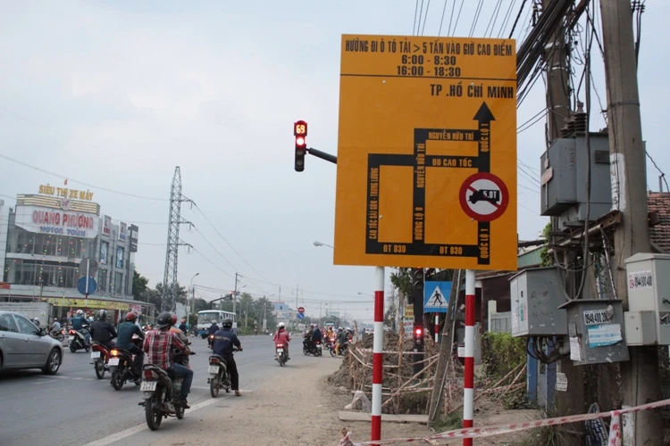 Ngày đầu tiên lệnh cấm xe trên năm tấn đi quốc lộ 1A được triển khai, tại Long An, ghi nhận của PV, khu vực ngã tư Long Kim, thị trấn Bến Lức, tại chốt đèn đỏ đã có biển hướng dẫn các xe từ năm tấn trở lên không được đi đường quốc lộ mà phải rẽ trái vào đường tỉnh 830, sau đó các xe có thể đi TP.HCM bằng đường cao tốc hoặc đường tỉnh 830C (Hương lộ 8).