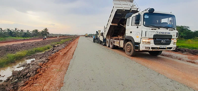Đường vành đai TP Tân An với chiều dài 23 km, tổng mức đầu tư gần 1.000 tỉ đồng đang được gấp rút thi công. Ảnh: ĐÀO TRANG