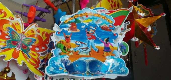 Những mẫu lồng đèn mới nhất mùa Trung thu năm nay như Thánh Gióng, Ngô Quyền, Hai Bà Trung, Ngư dân và biển đảo, Cảnh sát biển và biển đảo quê hương, lồng đèn DK1... có cán nhựa 7 sắc màu, nhạc thiếu nhi của Việt Nam (Tùng tùng dinh dinh, Tết Trung thu rước đèn ông sao).