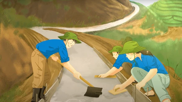 Nhóm bạn trẻ làm đường ở vùng cao - Ảnh: UNICEF
