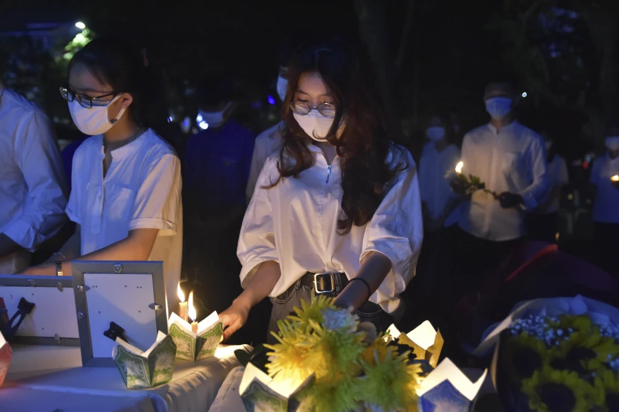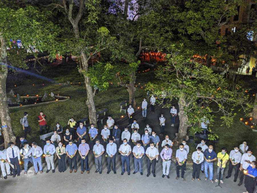 Buổi lễ tưởng nhớ diễn ra với hơn 100 sinh viên tham gia với điều kiện mang khẩu trang, sát khuẩn,... để phòng chống dịch COVID-19. Ảnh: NGUYỄN DO