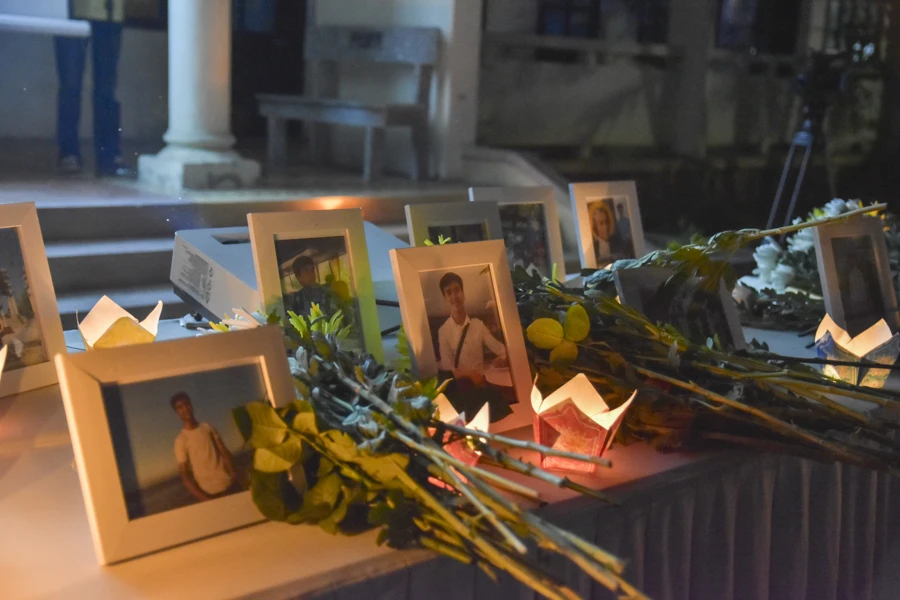 Cuối buổi lễ thầy cô, bạn bè dâng hoa và thắp nến để tưởng nhớ đến người học trò, người bạn Nguyễn Văn Nhã.
