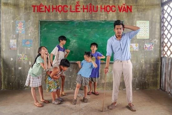 Đứng giữa đám học trò tinh nghịch, biểu cảm của Hoàng cũng thay đổi liên tục từ cáu kỉnh, mếu máo cho đến ôm đầu bất lực. Chỉ cần nhìn qua cũng có thể đoán được những tình huống dở khóc dở cười mà Hoàng phải đối mặt ở trong phim sẽ khiến khán giả cười nhiều như thế nào.