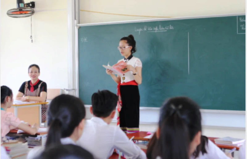 Cô giáo và học sinh lớp 12C1, Trường Dân tộc nội trú THPT số 2 tỉnh Nghệ An.