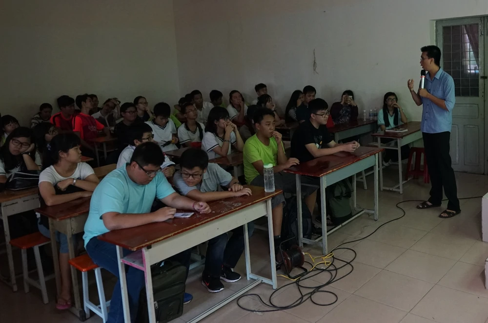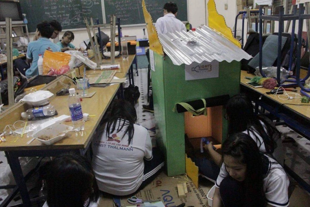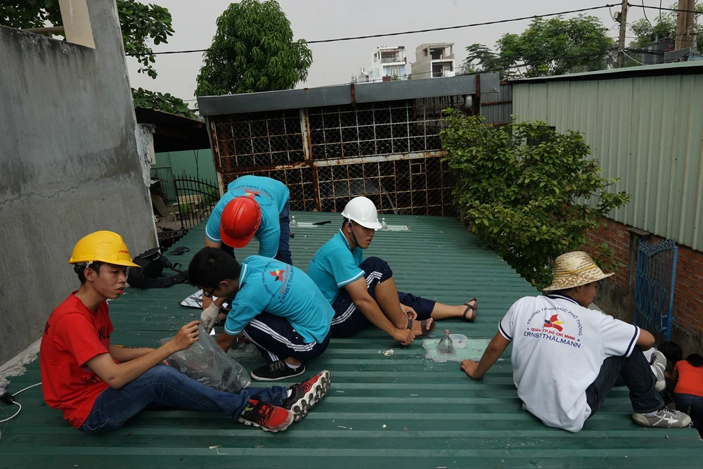 Đó là ý tưởng dự án mang tên “Ánh sáng hạnh phúc” của giáo viên vật lý Phạm Thư Tùng, được thực hiện cùng giáo viên toán Mai Xuân Long và 45 học sinh (HS) của bảy lớp, từ lớp 10 đến lớp 12 Trường THPT Ernst Thalmann.