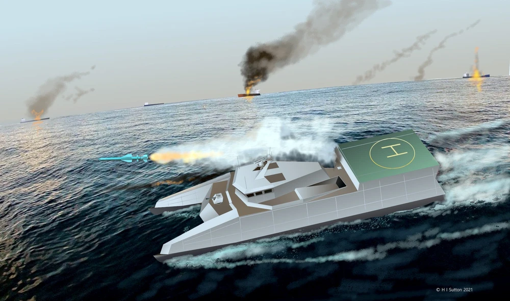 Minh họa thiết kế tàu hai thân mới của Hải quân IRGC. Ảnh: USNI NEWS