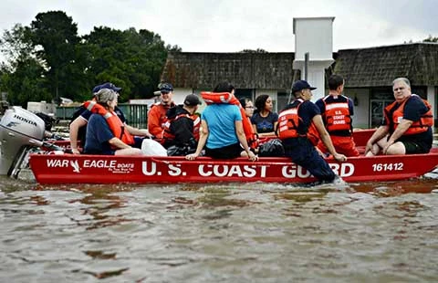 Lực lượng tuần duyên Mỹ cứu hộ tại Baton Rouge (bang Louisiana) ngày 21-8. Ảnh: UPI