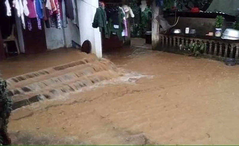 Lũ tràn qua nhà dân ở thị trấn Lang Chánh (Lang Chánh, Thanh Hóa). Ảnh: CTV