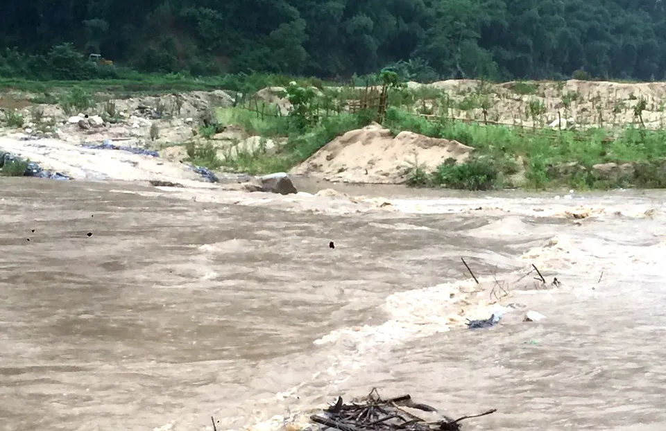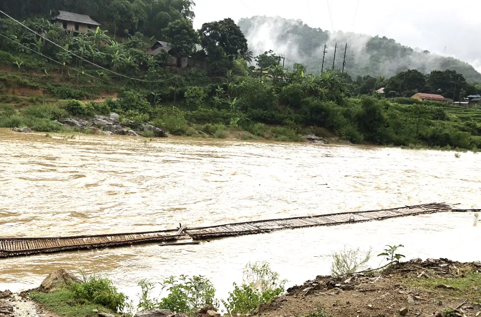 Mưa lũ kéo cây duy nhất ở bản Lầm (Trung Tiến, Quan Sơn, Thanh Hóa) bị cuốn trôi trên dòng sông Lò. Ảnh: HUYỀN TRÂN
