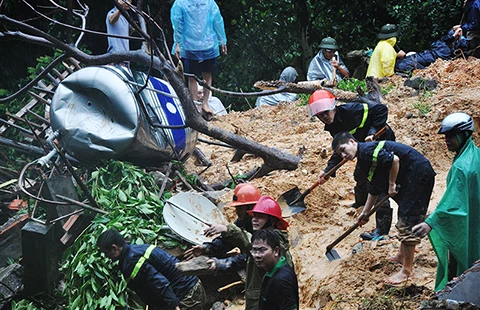 Hàng trăm người được huy động tìm kiếm thi thể các nạn nhân bị vùi lấp. Ảnh: BÁO QUẢNG NINH