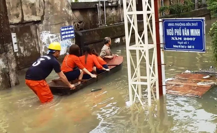 Người dân ở phường Bến Thủy phải đi lại bằng thuyền. Ảnh: Đ.LAM