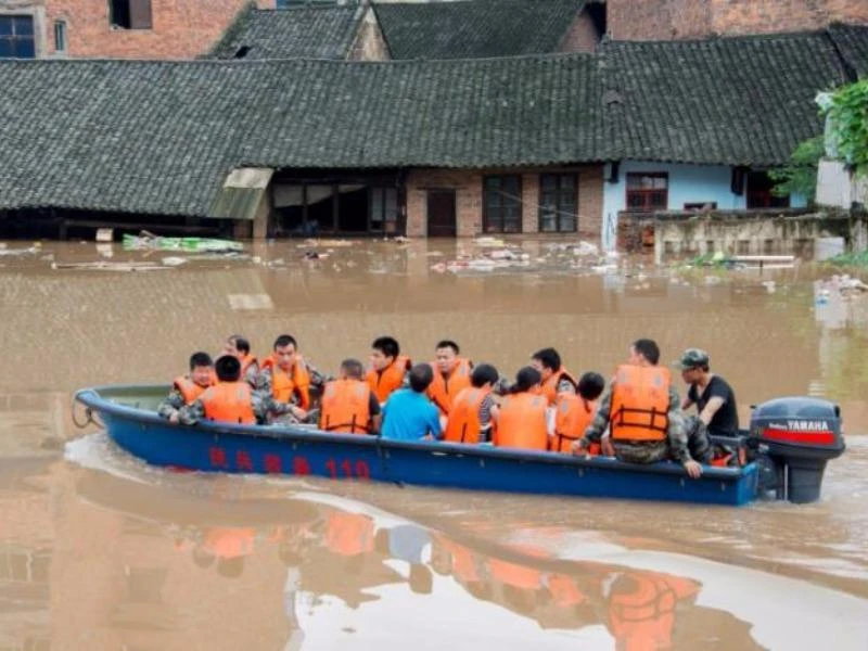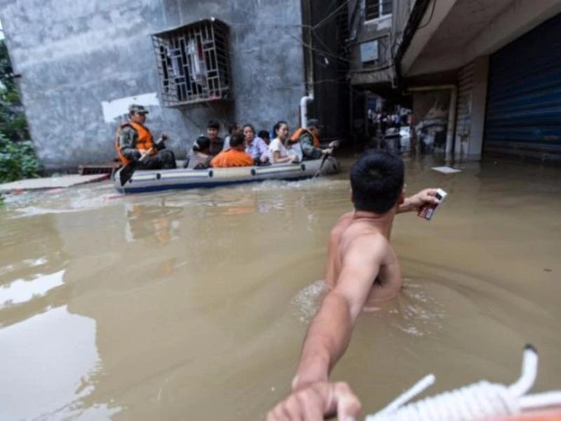 Trung tâm Cứu trợ hạn hán và kiểm soát lũ lụt quốc gia Trung Quốc đã chỉ thị ba trạm thủy điện nằm trên sông Dương Tử giảm lượng lũ xã lên tới 18.000 m3/giây để giảm nguy cơ nước lũ ào ạt tràn bờ. Mưa giông được dự báo sẽ tiếp tục diễn ra tại miền Nam Trung Quốc trong nhiều ngày tới. Trong ảnh: Tàu tham gia công tác cứu hộ ở huyện Tân Thiệu, Hồ Nam. Ảnh: REUTERS
