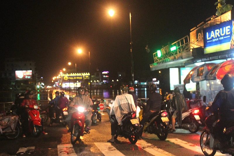 Vào tối 3-12, tại đập Đá (đoạn giao nhau giữa đường Nguyễn Sinh Cung và Lê Lợi, TP Huế), nước sông Hương dâng cao và chảy xiết, lực lượng chức năng đã phải đặt rào chắn cấm đi lại ở hai đầu để chặn xe và người dân đi qua, đề phòng nguy hiểm.