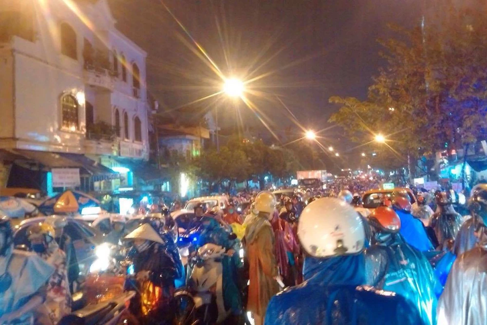 Thời điểm chặn đường đúng vào lúc tan tầm khiến tuyến đường bị ùn tắc nghiêm trọng, nhiều phương tiện không thể di chuyển được.