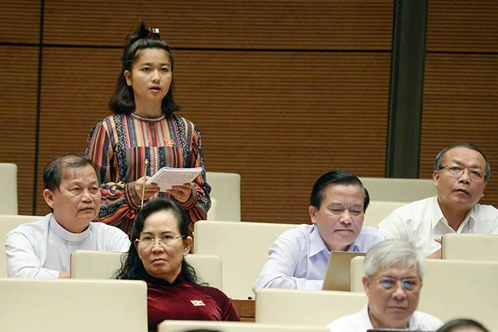 Đại biểu Ksor H’Bơ Khăp (Gia Lai) chất vấn về việc mất rừng. Ảnh: QH