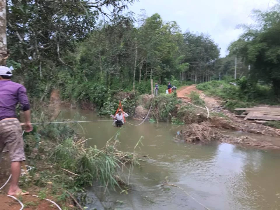 Theo đó, người dân tự chế lồng sắt để học sinh ngồi vào bên trong rồi kéo ròng rọc bằng dây thép sang sông. Đến trưa nay (5-10) nước sông Đại Tầm vẫn đổ về cuồn cuộn và học sinh vẫn phải dùng phương tiện tự chế này qua sông.