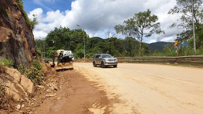 Đến 11 giờ ngày 19-6 điểm sạt lở trên đèo Bảo Lộc đã thông xe. Ảnh: CTV