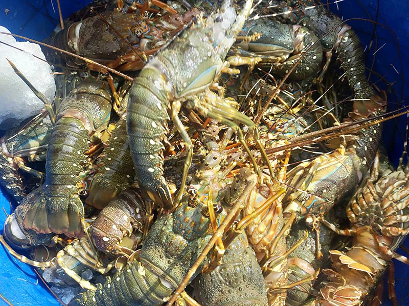 Tôm hùm chết bán với giá chỉ 200.000 đồng/kg. Ảnh: NO