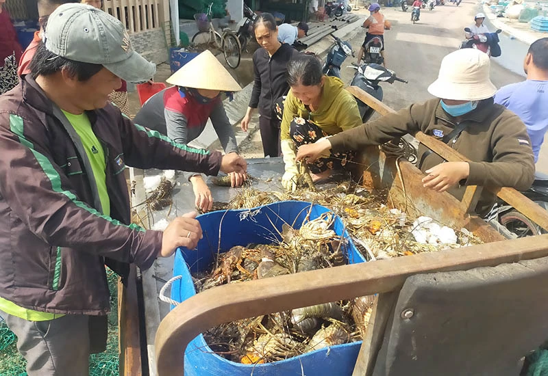 Tương tự, tại các phường Xuân Thành, Xuân Yên, Xuân Đài của thị xã Sông Cầu, tôm hùm cũng chết chất thành đống khắp nơi.