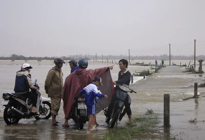 Theo Ban chỉ huy PCTT và TKCN tỉnh Thừa Thiên-Huế, hiện nay nước lũ trên các sông đang xuống. Tình hình ngập lụt diện rộng vẫn còn kéo dài ở các vùng thấp trũng của huyện Quảng Điền, Phong Điền, Phú Vang, Phú Lộc, thị xã Hương Trà, Hương Thủy và TP Huế. Ảnh: NGUYỄN DO