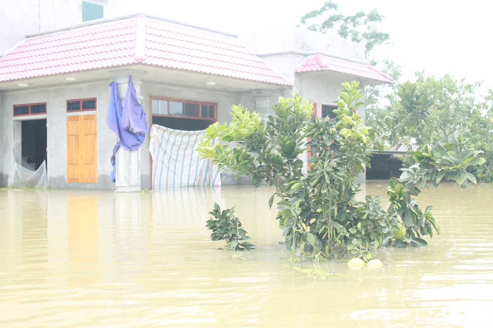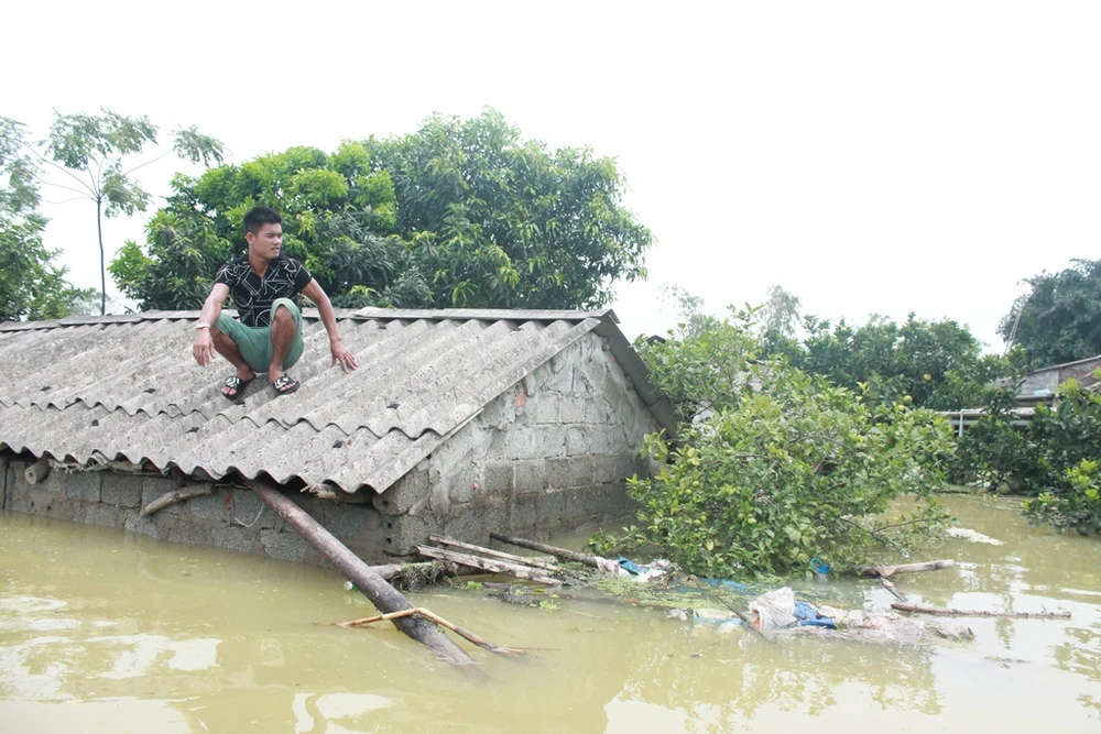 Đợt mưa lớn kéo dài từ ngày 13-7 khiến nước sông Bùi dâng cao, phần lớn xã Nam Phương Tiến (huyện Chương Mỹ, Hà Nội) bị ngập. Đến chiều 25-7, rất nhiều nhà cửa, trang trại ở đây vẫn chìm sâu trong biển nước.