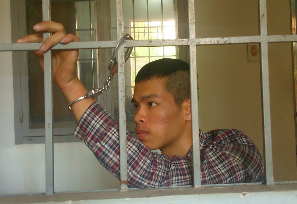 Nghi can Trung tại cơ quan công an. Ảnh: V.NGỌC