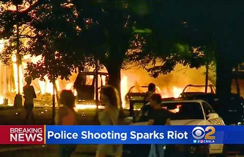 Một số người tức giận đã ném đá vào cảnh sát, phá và đốt xe cảnh sát, phóng hỏa nhiều cửa hàng.