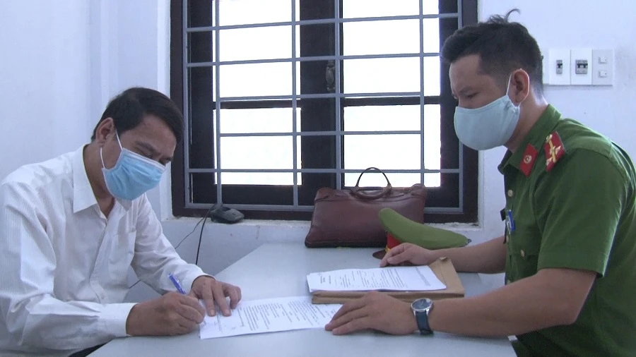 Tôn Thất Điệp tại cơ quan công an. Ảnh: C.Q