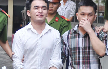 Hai bị cáo Tuấn (trái) và Xum sau phiên xử. Ảnh: CHU DU