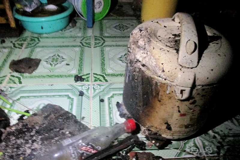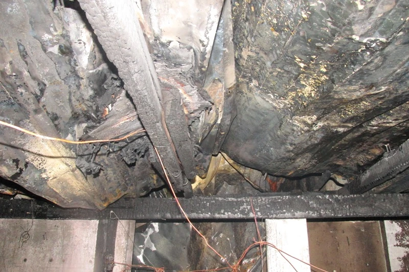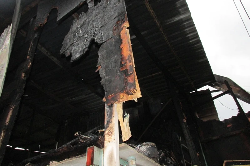 Trần nhà, cầu thang, mái tôn… đã bị cháy đen