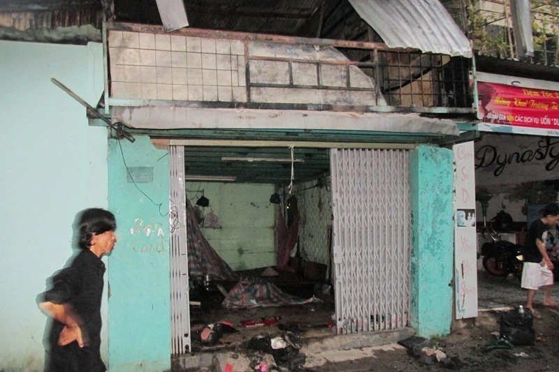 Căn nhà ở mặt tiền nằm cạnh chốt công an khu vực khu phố 3, phường 26, quận Bình Thạnh cũng bị lửa thiêu rụi