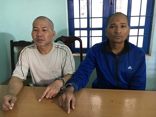Hai bị can tại công an. Ảnh: Tiến Anh