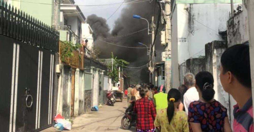 Theo ghi nhận, vụ cháy xảy ra tại một con hẻm trên đường số 9 (phường Linh Tây). Phát hiện vụ việc, người dân đã dùng nhiều vật dụng để dập lửa nhưng bất thành, chỉ trong ít phút ngọn lửa đã bao trùm kho hàng, cột khói bốc cao cả chục mét.
