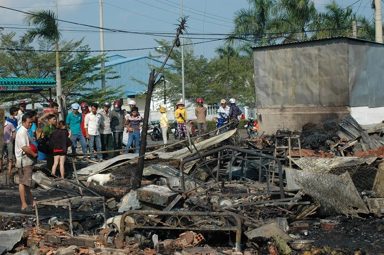 Lực lượng cứu hỏa đã có mặt kịp thời nhưng phải hơn hai tiếng sau, đám cháy mới được khống chế. Ngọn lửa đã thiêu rụi hoàn toàn 35 sạp hàng và 3 dãy phòng trọ gồm 37 phòng của công nhân gần chợ.
