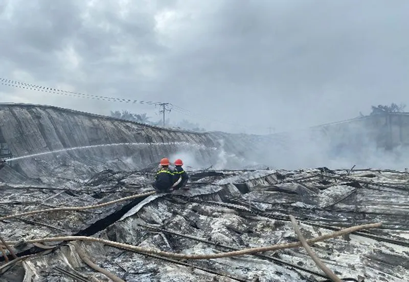 Ngay sau đó, khu nhà xưởng chứa nguyên liệu, khu chứa thùng hàng, thành phẩm may mặc xuất khẩu bị đổ sập hoàn toàn.