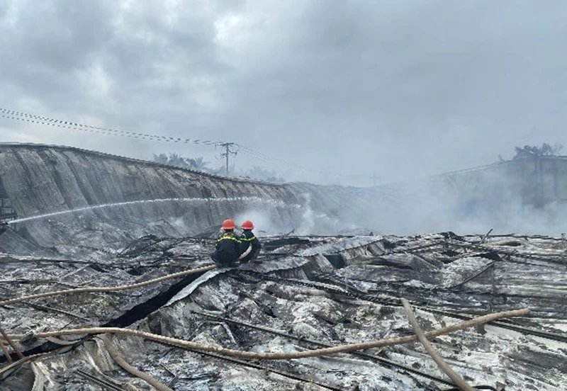 Cảnh sát dập lửa hoàn toàn để tránh đám cháy tái bùng phát. Ảnh: AT