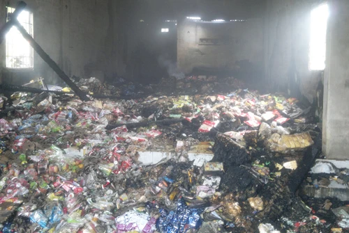 Toàn bộ kho hàng bị lửa thiêu rụi. Ảnh: BÌNH MINH