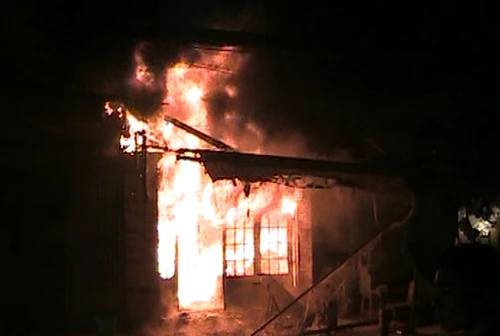 Lửa bùng phát dữ dội trong đêm. Ảnh: Hồng Trâm