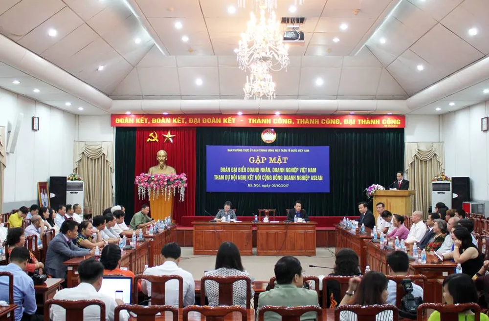 Ông Trần Thanh Mẫn, Chủ tịch UB Trung ương MTTQ Việt Nam bày tỏ vui mừng được đón tiếp và gặp mặt đại diện các doanh nhân, doanh nghiệp tiêu biểu Việt Nam chuẩn bị tham gia Hội nghị Kết nối Cộng đồng Doanh nghiệp ASEAN 2017 và Diễn đàn Cộng đồng Kinh tế ASEAN tại Singapore - Indonesia - Malaysia.